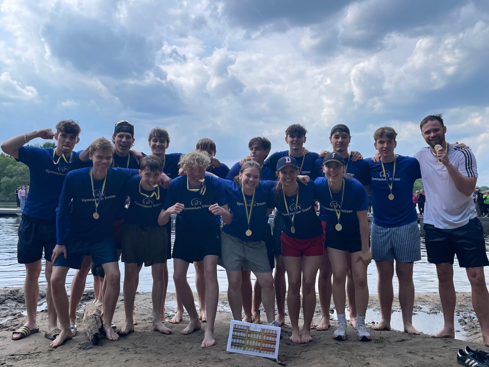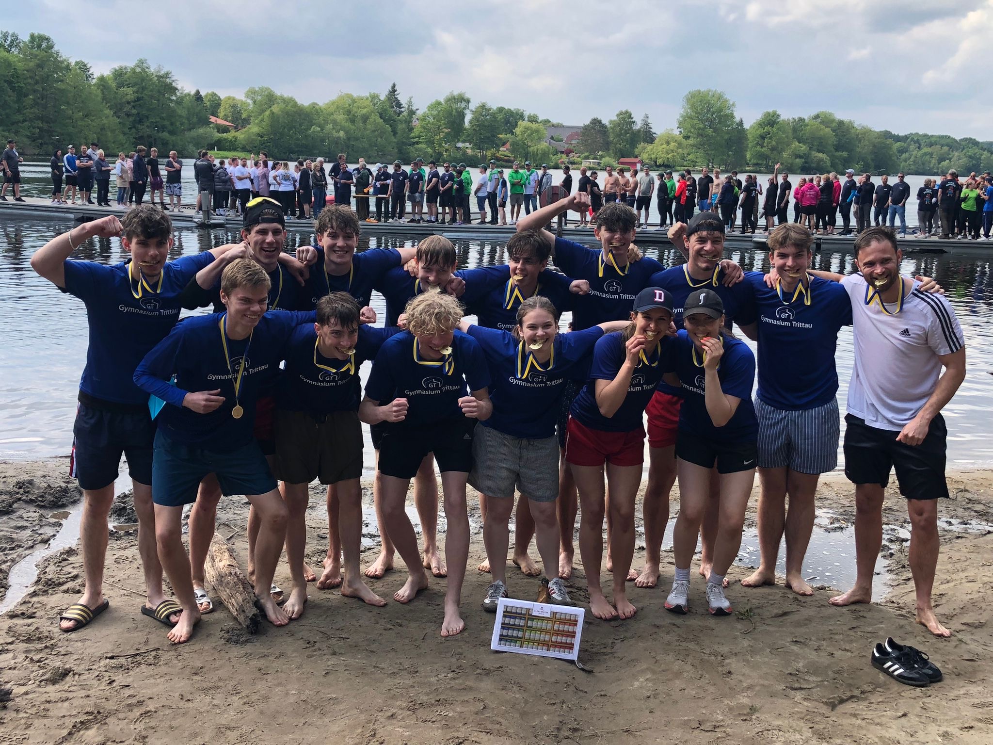 14 motivierte Mannschaften versammelten sich am Großensee, um gegeneinander anzutreten. Viele begeisterte Zuschauer feuerten die Teilnehmenden bei bestem Wetter an. Unser Sportprofil des E-Jahrgangs paddelte die Tagesbestzeit und konnte sich in 3 Vorläufen an die Spitze rudern. Allerdings wurden sie im Finale knapp geschlagen, sodass sie letztendlich einen tollen zweiten Platz belegten. Insgesamt war es ein rundum gelungener Tag.