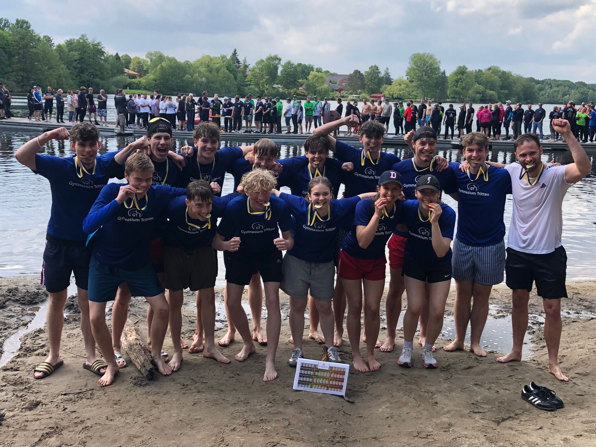 14 motivierte Mannschaften versammelten sich am Großensee, um gegeneinander anzutreten. Viele begeisterte Zuschauer feuerten die Teilnehmenden bei bestem Wetter an. Unser Sportprofil des E-Jahrgangs paddelte die Tagesbestzeit und konnte sich in 3 Vorläufen an die Spitze rudern. Allerdings wurden sie im Finale knapp geschlagen, sodass sie letztendlich einen tollen zweiten Platz belegten. Insgesamt war es ein rundum gelungener Tag.