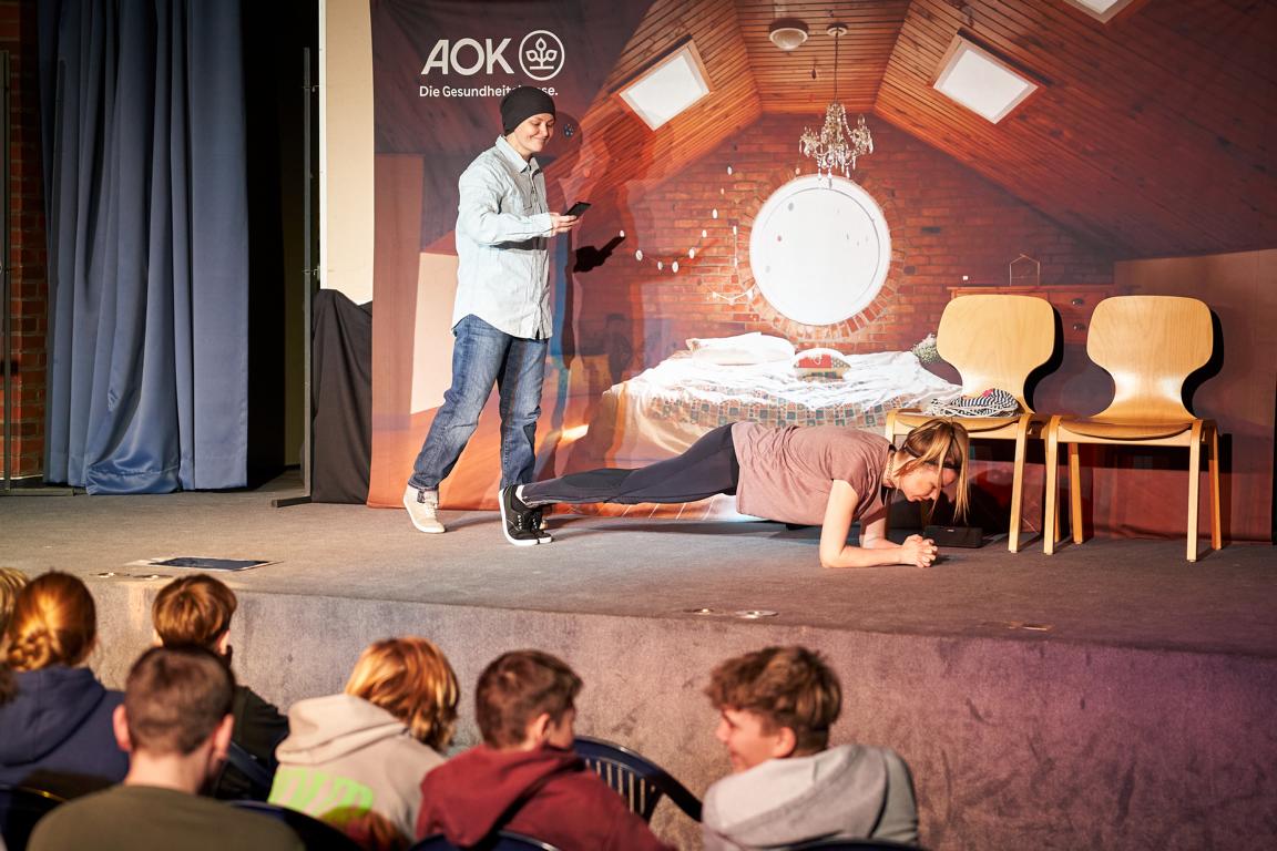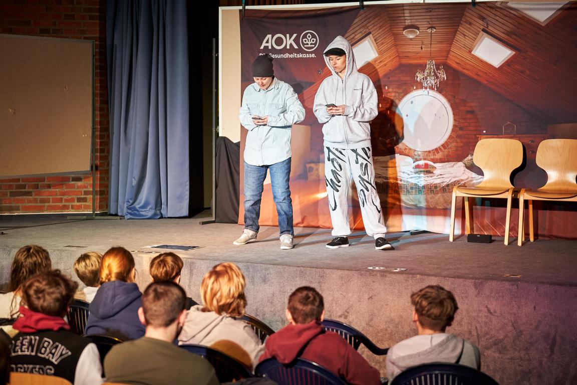 Die Handlung spielte in der Lebens und Erfahrungswelt von Schülerinnen und Schülern ab 12 Jahren. Erfahrene Schauspielerinnen und Theaterpädagoginnen schlüpften in die Rollen der jungen Protagonisten. Sie schilderten dabei eindrücklich, wie Probleme mit dem Essen entstehen, und zeigten Auswege auf. Diese Erkenntnisse wurden im Klassenverband gemeinsam mit den Schauspielerinnen nachbereitet. Finanziert wurde die Theateraufführung durch die AOK NordWest.