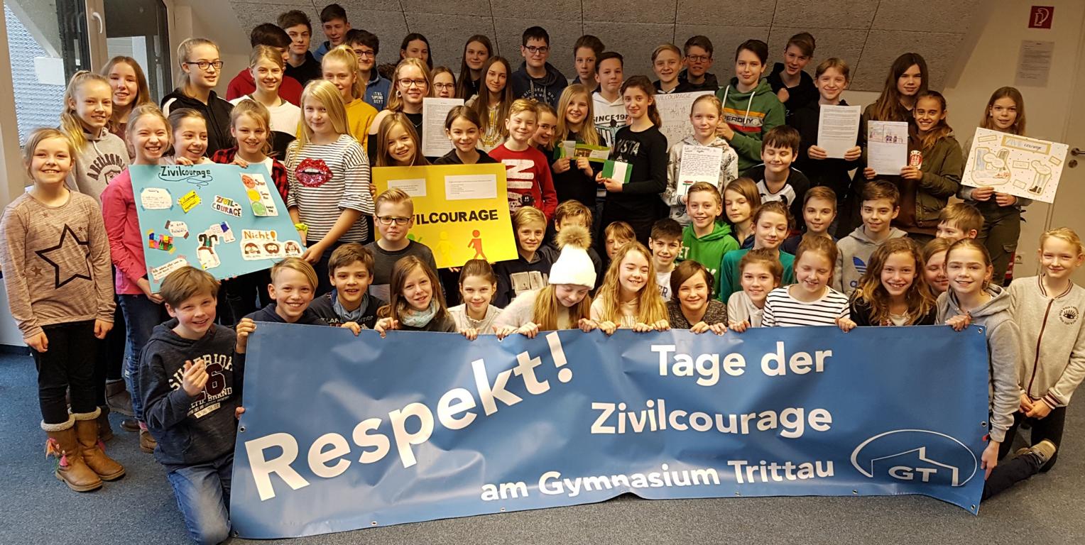Zum wiederholten Mal führt das Gymnasium Trittau die „Tage der Zivilcourage“ durch und stellt vom 24. bis 30 Januar dieses Thema in den Mittelpunkt des Schullebens. Ergänzend zur kontinuierlichen Arbeit im Präventionsbereich soll so nochmal verstärkt der respektvolle Umgang miteinander im Alltag gefördert werden. Denn: respektvoller und verantwortungsbewusster Umgang mit seinen Mitmenschen und das Eingreifen in Situationen, in denen zentrale Werte und soziale Normen unserer Gesellschaft verletzt werden --- diese Zivilcourage wünschen wir uns alle: Zivilcouragiert handelt, wer trotz drohender Nachteile für die eigene Person bereit ist für andere einzutreten.